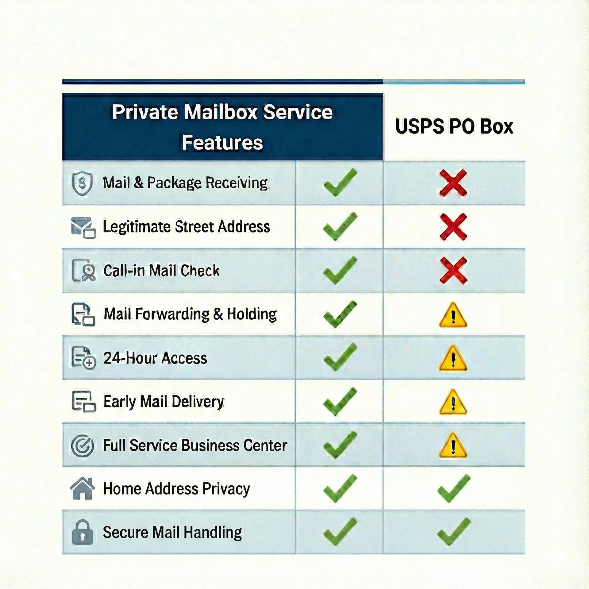 - Home Address Privacy: Keep your personal residence private and secure by using your mailbox address for all public and business correspondence. Maintain a consistent address, even if you relocate or travel often.